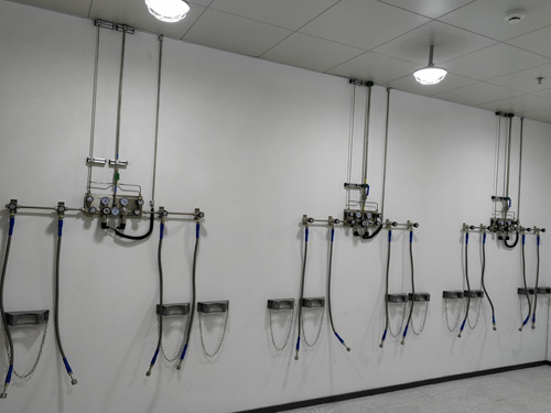 2.氣瓶間下設立以此調壓的面版,在這其中二托一的面版帶吹掃銅鍍洛的面版4套。